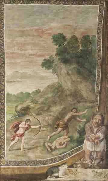 rescue of each other, smote him with a thunderbolt. Angry on that account, Apollo slew the